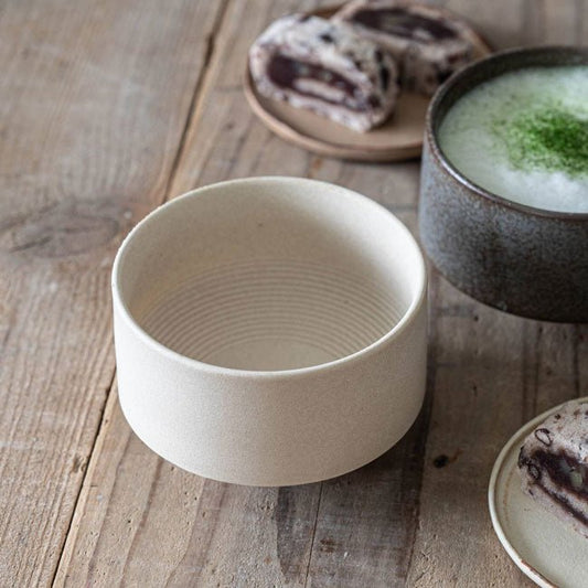 Matcha Latte Bowl – Small Size with Wooden Stick – Mino Ware – White