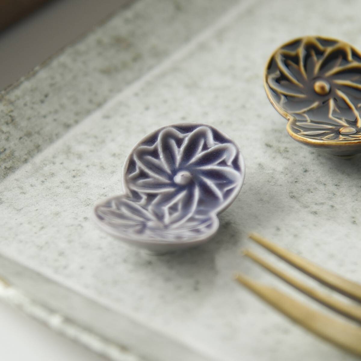 Japanese Chopstick Rest Botanical Black Mino Ware Matcha Scoop Rest Made in Japan