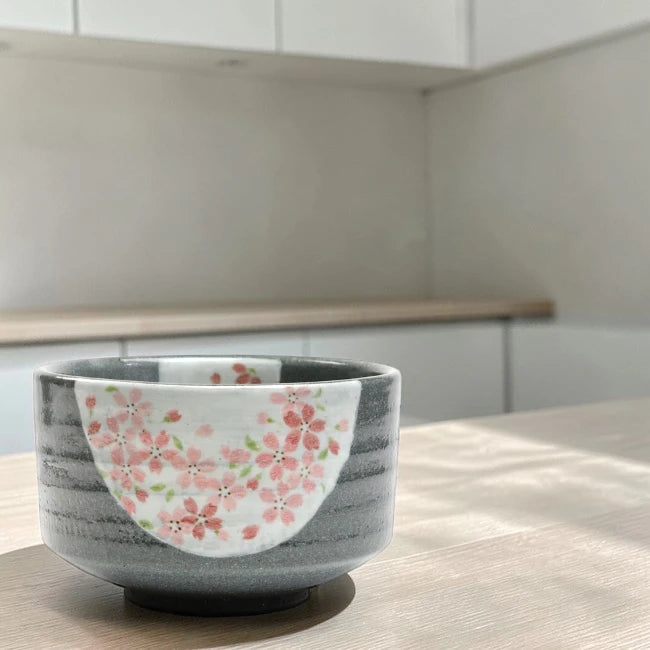 Japanese Matcha Tea Bowl – Cherry Blossom Mino Ware (Gray Tone) | Handmade in Japan