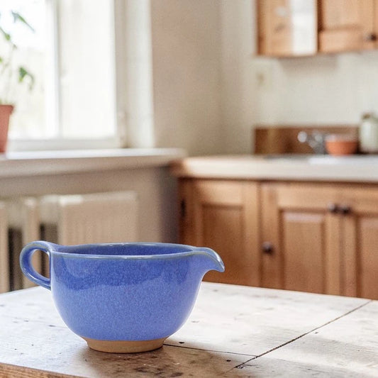 Sky Blue Matcha Bowl with Handle and Spout – Handcrafted Mino Ware, Perfect for Matcha Lattes
